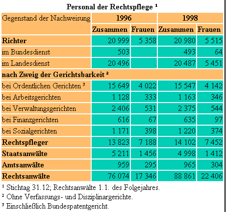 Das an unseren Gerichten sehr viel Personal bezahlt werden muss und auch der Stand der Rechtsanwälte eine sehr große Gruppe geworden ist, zeigt die nachfolgende Tabelle: