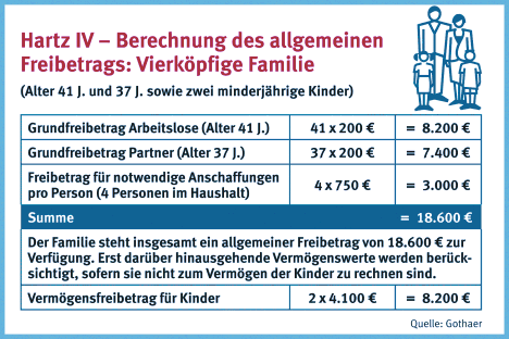 Selbst ein im Haushalt lebendes Kind kann das Vermögen mit sichern, denn auch dieses besitzt eine Vermögensfreigrenze in Höhe von 4850 Euro.