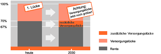 Warum verschenkt der Staat nun aber plötzlich Geld? Die schlechte Nachricht ist, dass das Rentenniveau von heute 70 % bis zum Jahr 2030 auf 67 bis 68 % des letzten Nettoeinkommens gesenkt werden